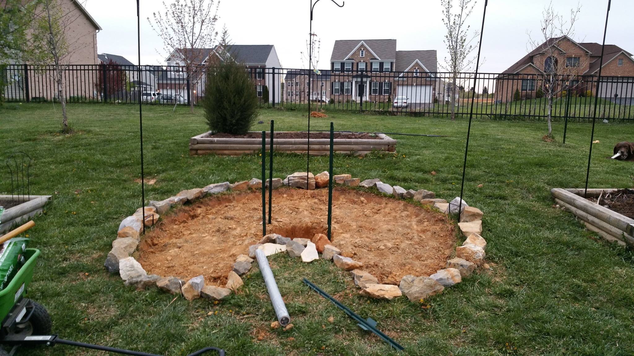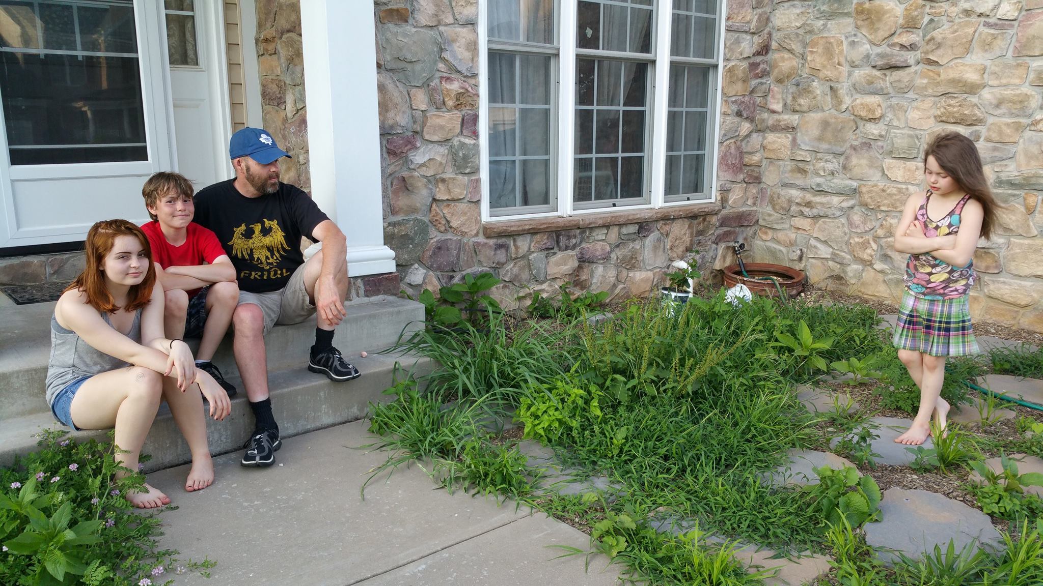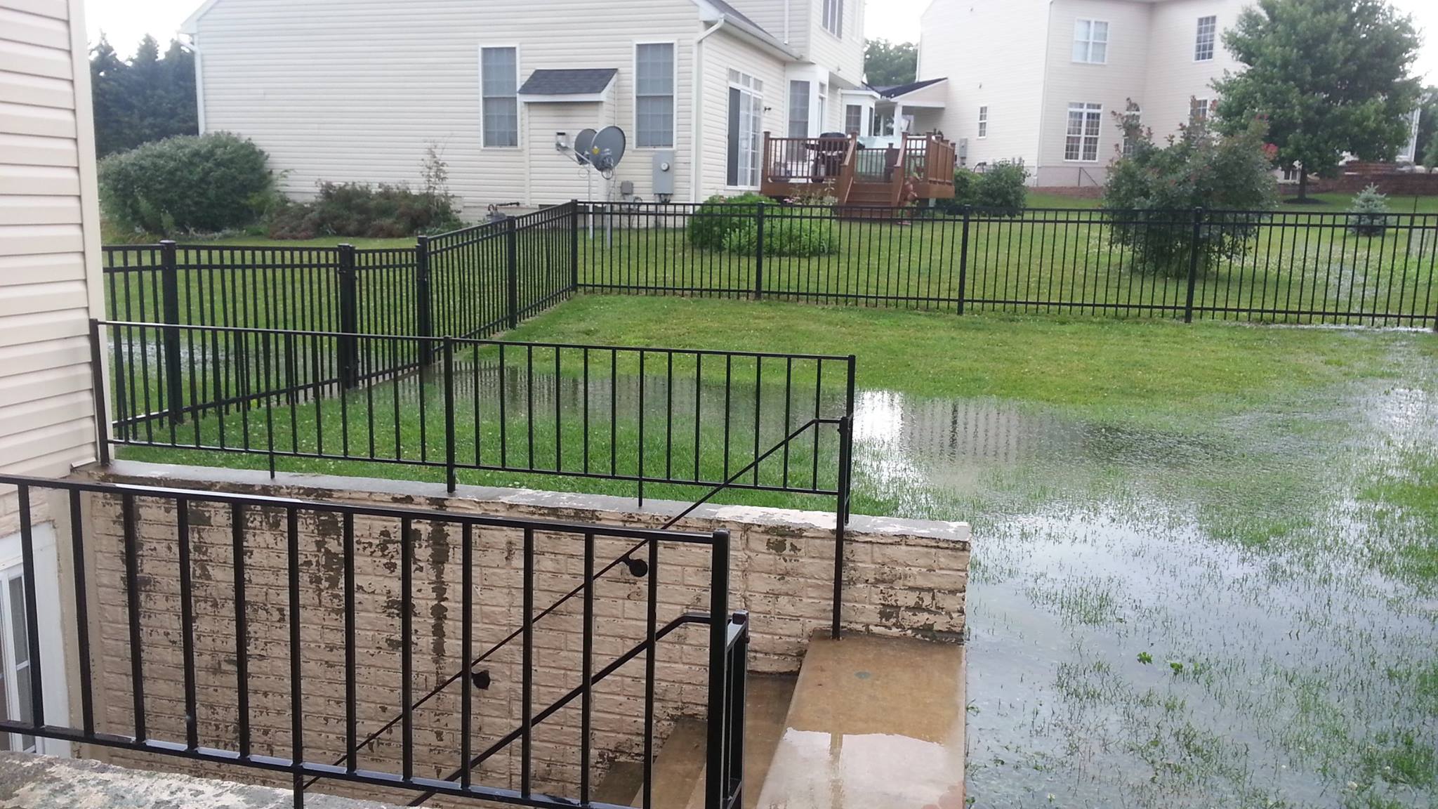 This is our yard after the last rain a few days ago… thankfully, only a little puddle came in and was met by a pile of towels in front of the basement door. But, I’m thinking the holding our breath and crossing our fingers approach won’t be a sufficient long-term plan. Sigh.