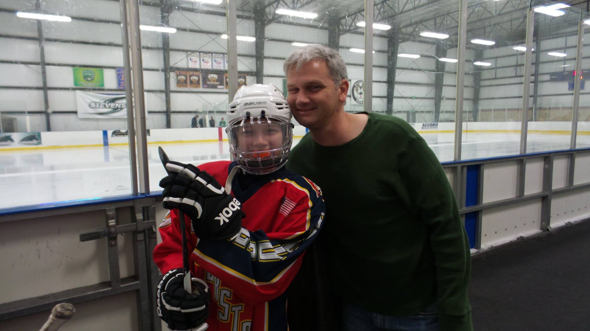 Hockey in Laurel… his team won…. now we both need a nap… πŸ™‚