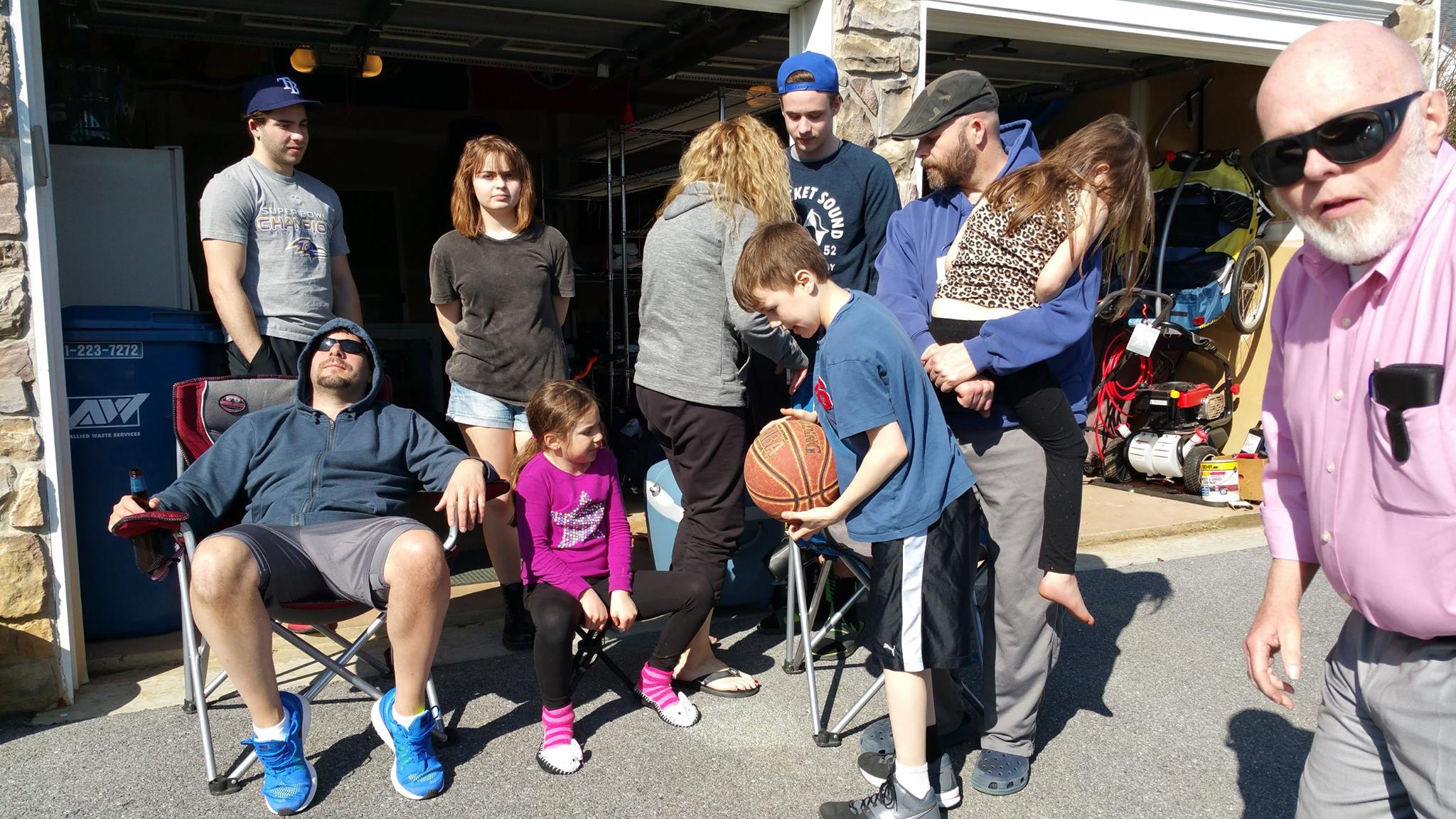 Darren and Joe heading off to the “Rink of Dreams” game in Hershey. Leave it to Joe to be heading to his hockey game with a basketball (and sneakers to replace the flip-flops)… just in case the opportunity to throw a few shots avails itself!