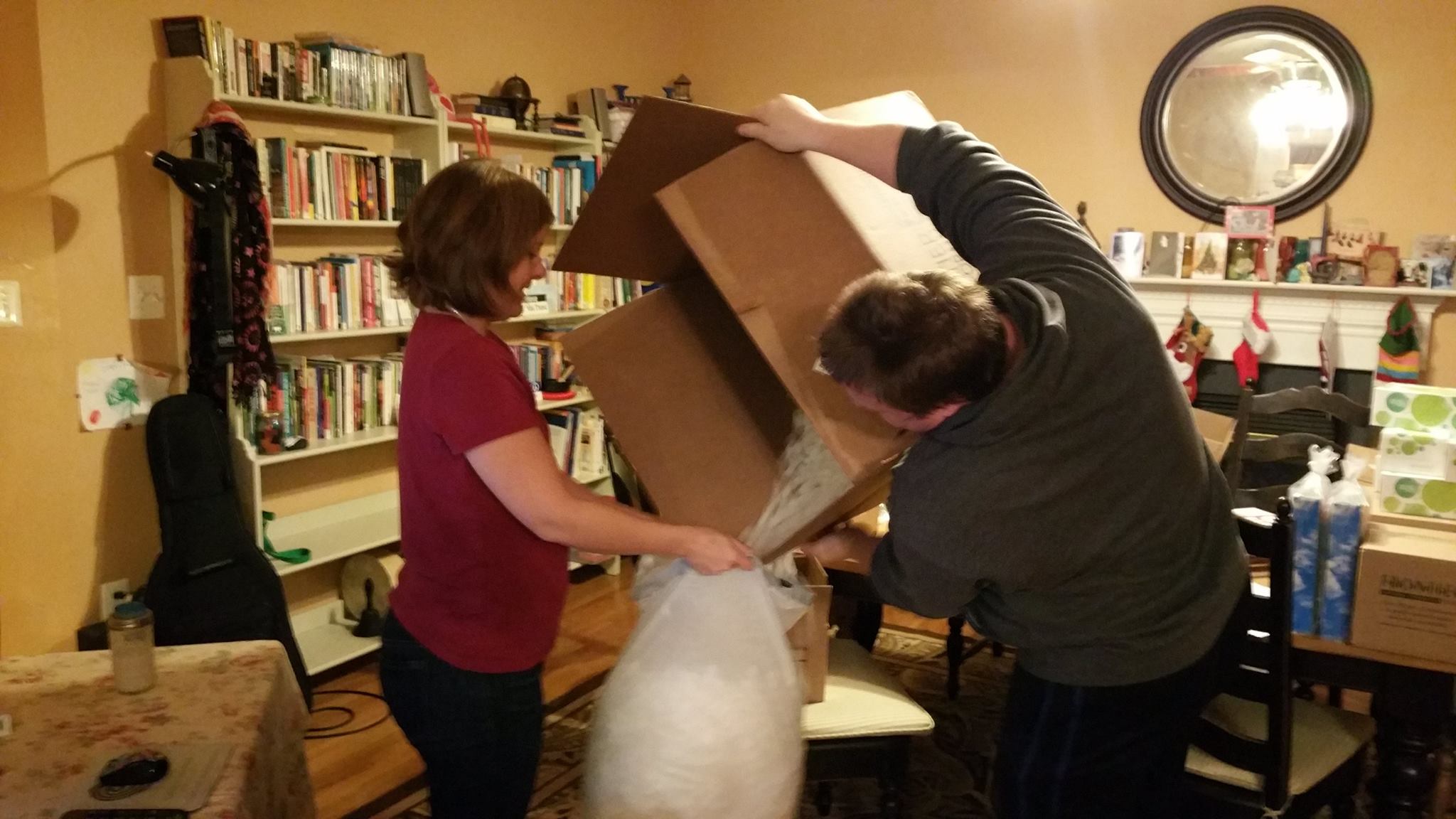 Putting Eric and Jessica to work bagging up packing peanuts from our Frontier order that arrived during our gathering.