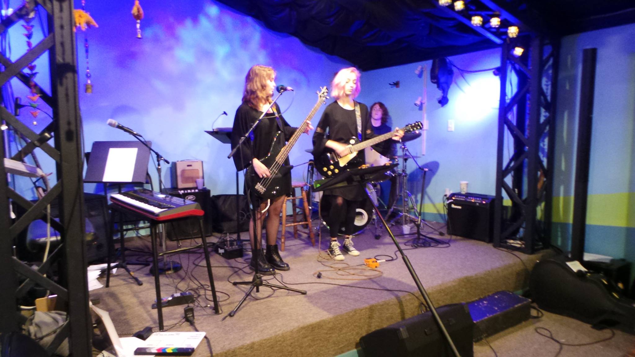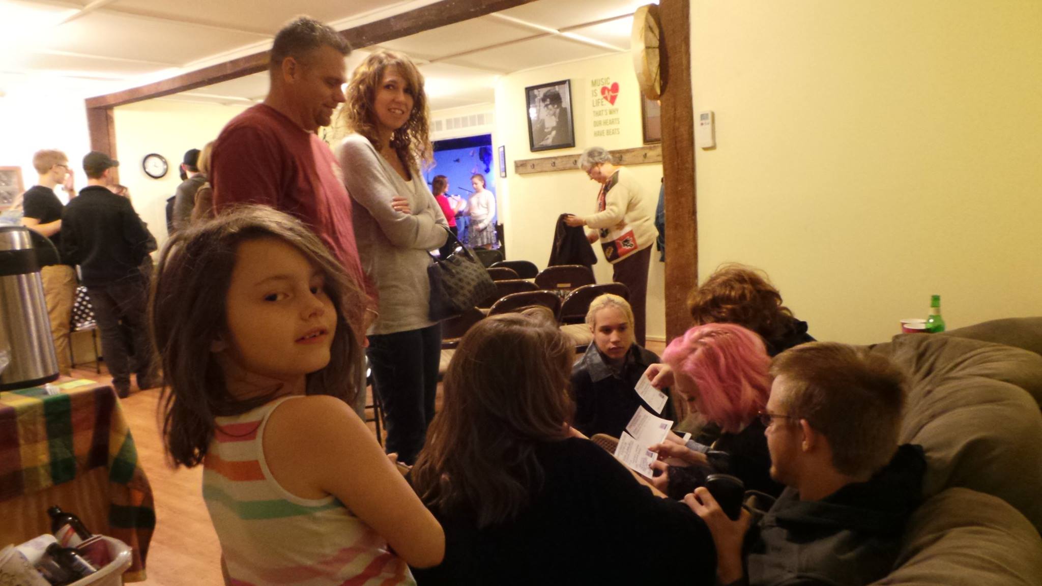 I took Flo & Hannah out to the The New Earth Granary in Berkeley Springs tonight, so they could play a couple songs for the event, accompanied by their bandmate, Tyler, from Evolution Rock School. Turns out the event had a great turnout, but the kids got put at the very end, so we were there until almost 1am! But, they did a great job, and despite being exhausted, I enjoyed the evening, and am thankful for the support crew and fan club that stuck it out all evening, too!.
