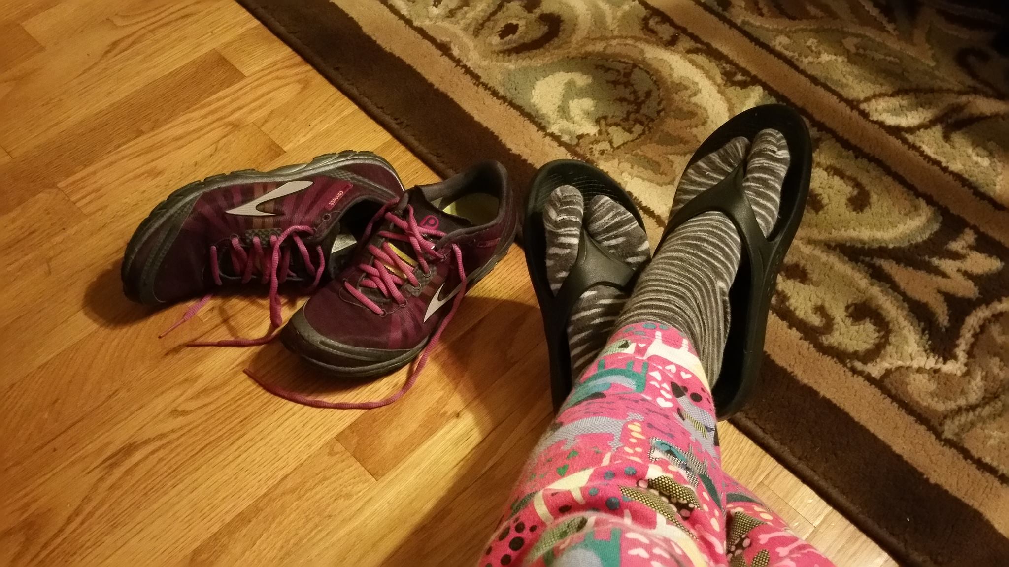 It’s amazing how the conscious transition from flip-flops with socks to sneakers can give the day a whole new outlook. It may be Sunday evening, but I’m going to get stuff done! :-)Note: The full transition from pj’s to regular clothes is likely to elicit even more long-lasting effects! But, I don’t want to overdo it… I’ll save that for tomorrow. πŸ™‚